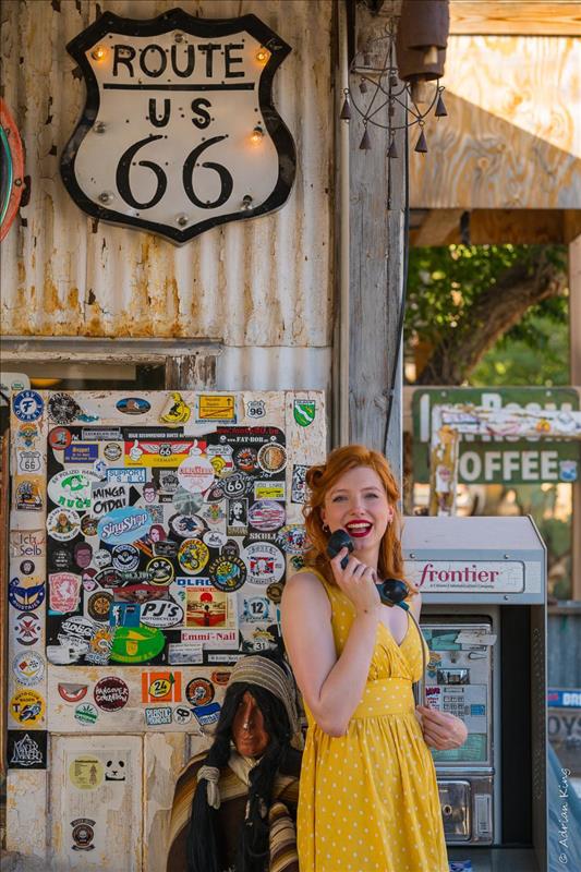 We started on Route 66 proper in Kingman, Arizona and moved slowly east using some of the paraphernalia of the different stores and bars as the background for some model shoots.