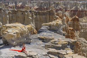 The more interesting part of the trip was stopping off in various uncrowded locations in order to mix the models with the desert landscapes. Damien has a great eye for color and shape and acted as the director. For me, having never directed professional models before, this was both helpful and very instructional -- it is harder than you might think! But everyone got some pretty decent shots I think.