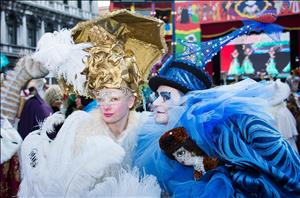 The Venice Carnival is, essentially, an annual Mardi Gras/Lent/Ramadan/... festival but with a very long history. There are more activities available than you can possibly attend (balls, banquets, canal parades, ...) but the main attraction is the costumes and masks that people wear for the event. Some of the revellers are paid performers but most are people from all over the world simply joining in with everything from the enormously elaborate (this lady won the costume contest in 2013):